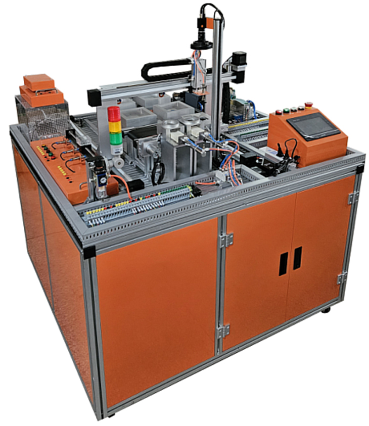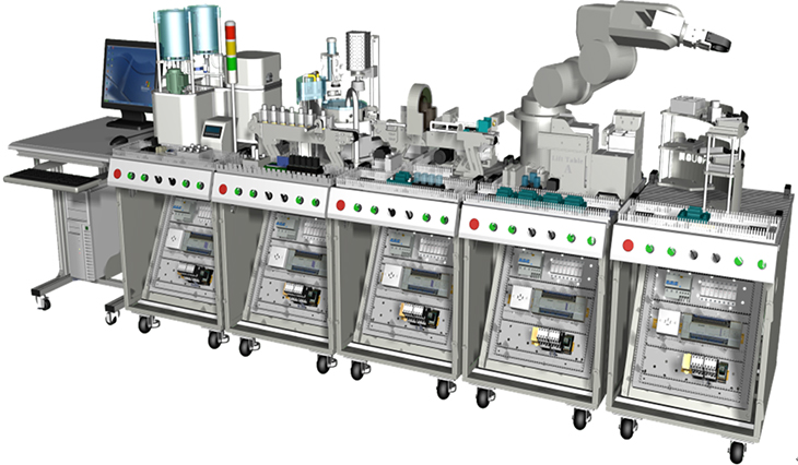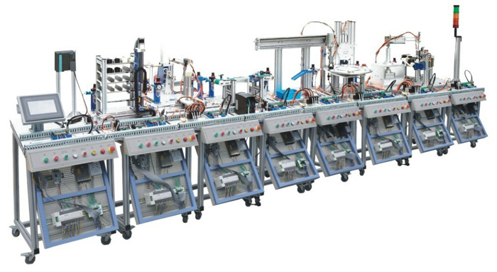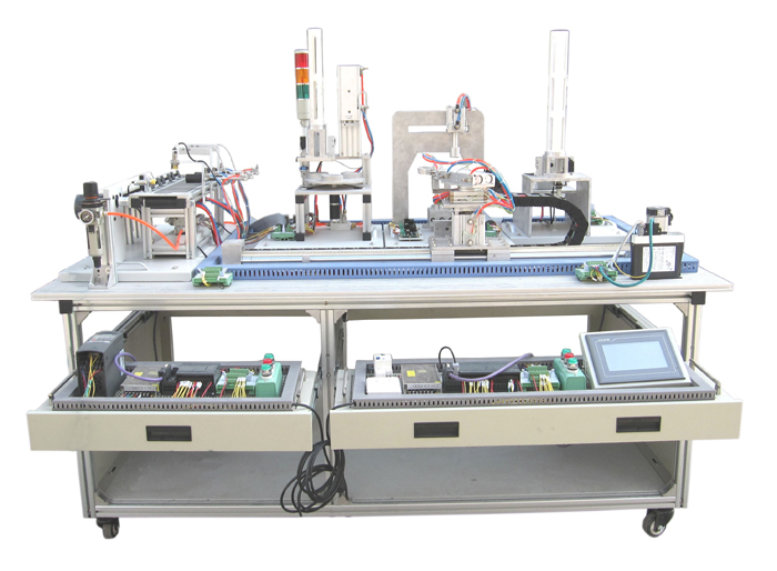 機電一體化技術實訓設備是指機械技術、電工電子技術、微電子技術、信息技術、傳感器技術、接口技術、信號變換技術等多種技術進行有機地結合,并綜合應用到實際中去的技能實訓綜合技術,現代化的自動生產設備幾乎可以說都是機電一體化的設備。自動化生產線實訓考核系統,可以培養和提高學生專業綜合能力,是一種重要的實訓設備。自動化生產線實訓系統、基于PLC技術的自動化生產線實訓考核系統,可以培養和提高學生專業綜合能力,是一種重要的實訓設備。自動化生產線實訓系統整體包括自動供料、檢測傳輸、檢測加工、自動裝配、自動分揀等工序,很好的將機械技術、微電子技術、電工電子技術、傳感測試技術、接口技術、信息變換技術、網.絡通信技術等多種技術有機地結合。該系統中自動分揀站的設計過程,包括系統硬件設計、PLC控制設計和程序設計方法。現代化的自動生產設備的最大特點是它的綜合性和系統性,在這里,機械技術、微電子技術、電工電子技術、傳感測試技術、接口技術、信息變換技術、網絡通信技術等多種技術有機地結合,并綜合應用到生產設備中:而系統性指的是,生產線的傳感檢測、傳輸與處理、控制、執行與驅動等機構在微處理單元的控制下協調有序地工作,有機地融合在一起。可編程序控制器(PLC)以其高抗干擾能力、高可靠性、高性能價格比且編程簡單而廣泛地應用在現代化的自動生產設備中,擔負著生產線的大腦一微 處理單元的角色。因此,培養掌握機電一體化技術,掌握PLC技術及PLC網絡技術的技術人材是當務之急。而一套基于PLC技術的自動化生產線實訓考核設備可以模擬一個與實際生產情況+分接近的控制過程,使學習者得到一個非常接近于實際的教學設備環境,從而縮短了理論教學與實際應用之間的距離。自動分揀站需完成對上一單元送來的已加工、裝配的工件進行分揀。使不同顏色的工件從不同的料槽分流的功能。當輸送站送來工件放到傳送帶上并為入料口光電傳感器檢測到時,即啟動變頻器,工件開始送入分揀區進行分揀。上海碩博弘揚大國工匠精神, 發展職業教育,應用教學設備,為企業培養高技能人才,而專業生產:光機電一體化(自動生產線)實訓裝置、灌裝自動化生產線實訓裝置、工業自動生產線實訓裝置 、工業控制模擬實訓裝置 、機電一體化組合實訓平臺 、機電一體化綜合實訓考核裝置、自動化生產安裝與調試實訓裝置 、光機電一體化高速分揀實訓系統 、典型機電設備安裝與控制實訓裝置、模塊式柔性自動環形生產線實驗系統(帶機器人工程型)、立體停車庫實物教學實驗裝置、機電一體化柔性生產線加工實訓系統(5站)、網絡型模塊式柔性自動化生產線實驗系統、模塊式柔性自動環形生產線實驗系統(工程型)、柔性生產制造實驗系統(工程型)、現代物流倉儲自動化實驗系統、運動實訓裝置、循環搬運自動控制實訓裝置、平面雙軸運行控制實訓裝置、工業機械手實訓裝置、物料分揀實訓裝置、機械手實訓裝置 、立體倉庫實訓裝置、十字路口交通燈實訓系統、機電液氣一體化綜合實訓裝置、光機電一體化高速分揀實訓系統、步進伺服控制綜合實訓平臺、光機電氣一體化控制實訓系統、 光機電一體化綜合實訓考核裝置、光機電一體化實訓考核裝置、光機電一體化實訓考核裝置、光機電氣一體化控制實訓系統、自動生產線拆裝與調試實訓裝置、柔性自動化生產線實訓系統。