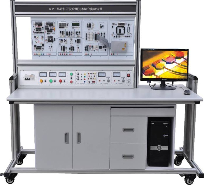 單片機開發應用技術綜合實驗裝置由控制屏、實驗掛箱、實驗桌組成,通過本實驗臺可完成單片機的接口擴展、數據采集、數據顯示、鍵盤控制、定時器、打印機接口等實驗,配備有仿真器。