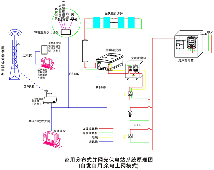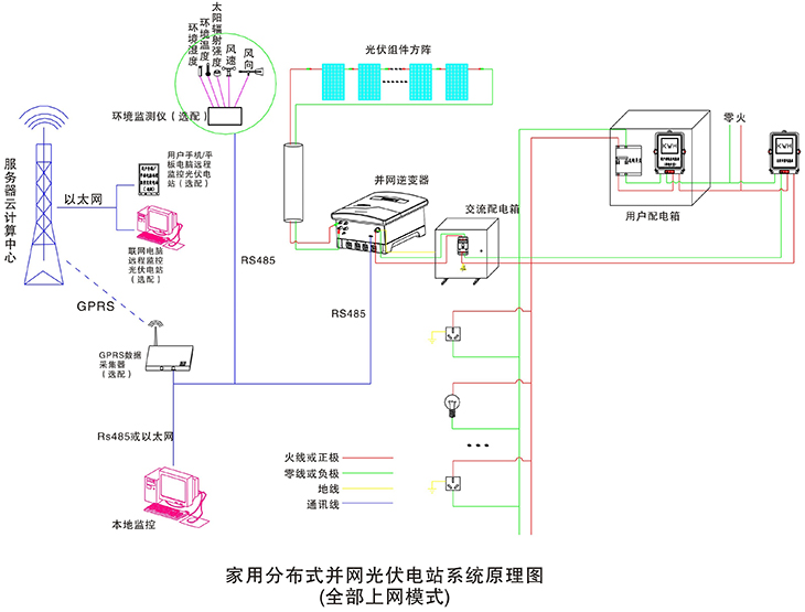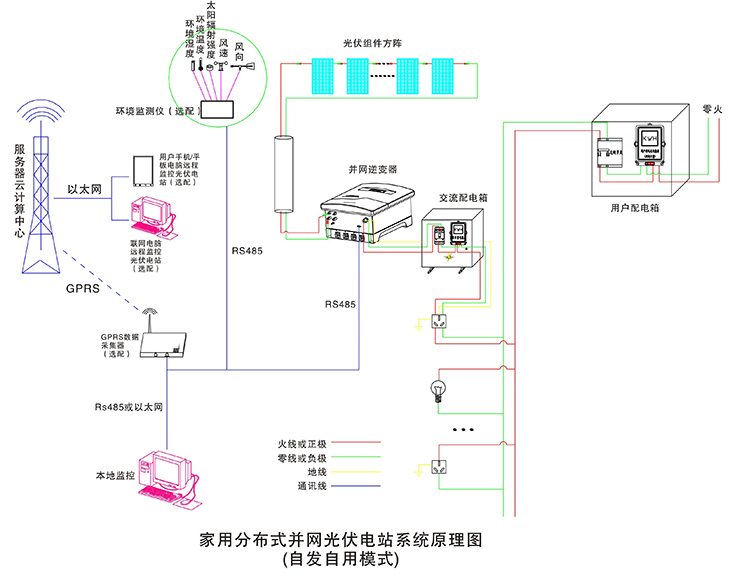 在晴朗的白天,裝在屋頂上的光伏組件發(fā)出的直流電經過并網逆變器逆變成與電網同頻率同相位的單相交流電給負載進行供電,在夜晚或陰雨天等太陽光照不足的情況下,系統處于待機狀態(tài),負載用電全部來自電網。您可以通過系統監(jiān)控軟件來實時查看系統的運行狀態(tài)和故障信息,或者是選配遠程通訊數據采集器,將系統工作數據通過GPRS或以太網,傳輸到您的手機、平板電腦或任意一臺聯網的電腦,以便于您遠程實時掌控電站的信息。