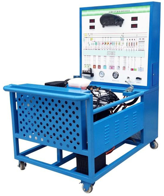 設(shè)備采用翻新新款五菱B15 電控汽油發(fā)動機總成及運行附件的固定臺架和運行檢測控制面板臺架兩部分組成;