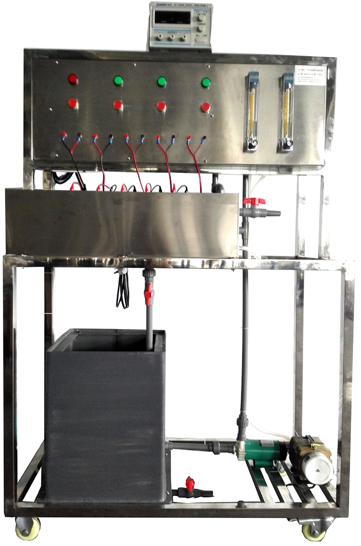 2.   電解、沉淀、過濾一體化電解槽:尺寸560×160×200mm,不銹鋼結構,內襯PP板。