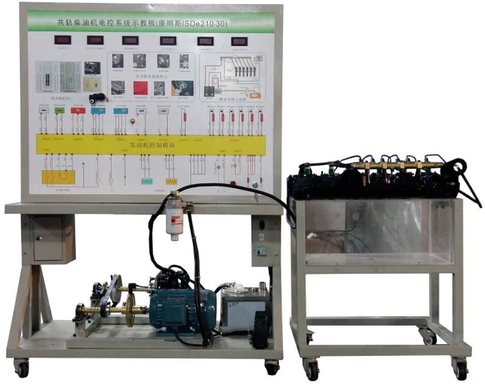 1.真實(shí)可運(yùn)行的共軌柴油發(fā)動(dòng)機(jī)燃油噴射系統(tǒng),充分展示燃油噴射系統(tǒng)的組成結(jié)構(gòu)和工作過程。電機(jī)驅(qū)動(dòng)曲軸位置信號(hào)輪,可演示電子燃油噴射工作情況。