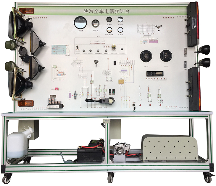 全車電路實訓臺、該設備采用陜汽SX2190柴油機整車電器實物為基礎,充分展示汽車儀表系統、燈光系統、雨刮系統、喇叭系統、發動機電器系統、起動系統和充電系統等汽車電器各系統的組成結構和工作過程。