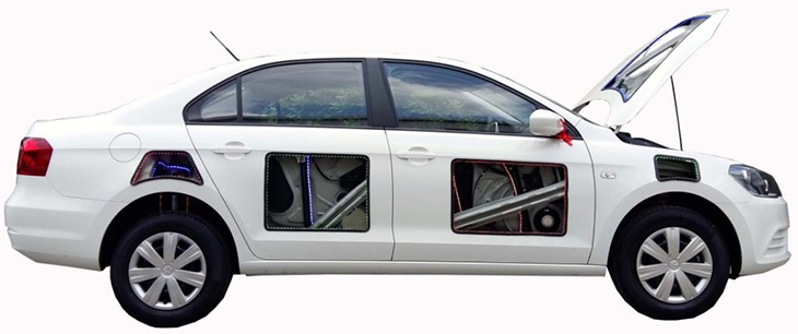(1)整車電控系統實訓臺用于汽車電控系統的教學與實訓,包含汽車電控系統六大部分:發動機電控系統、自動變速器、ABS系統、SRS系統、音響系統、空調系統,燈光與車身電器系統;