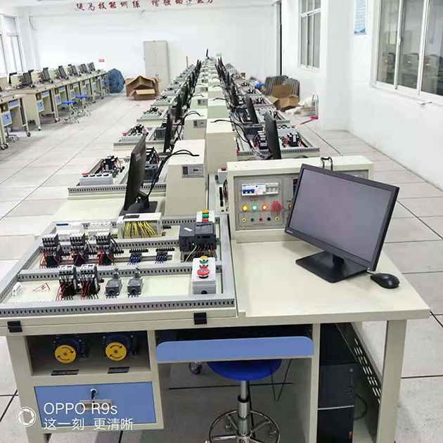 維修電工中級技能實訓室設備、電工中級PLC實訓室實驗臺、電子技術實訓室實驗臺、機床模擬排故實訓室實驗臺、電氣接線調試實訓室實驗臺,能進行維修電工中級考證各個模塊的培訓、提高了學生技能考證的通過率。
