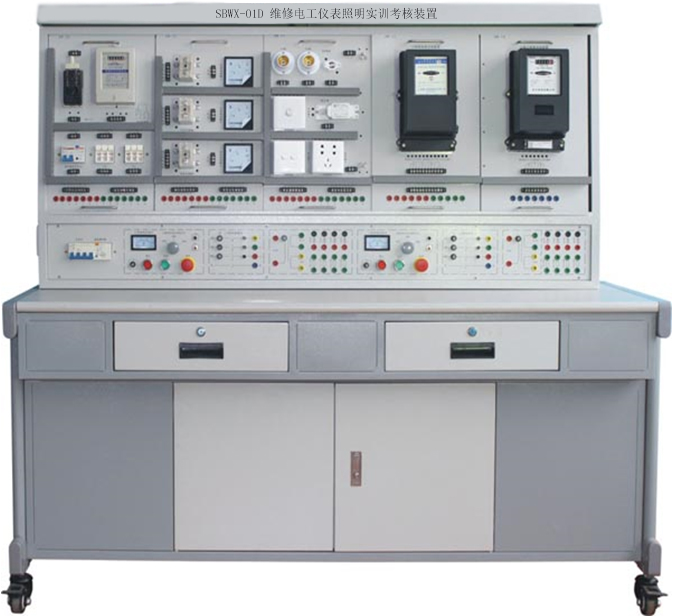 初級維修電工實訓室設備可作為維修電工考核裝置,有可在網孔板上進行照明器件及線路的安裝,電工儀表測量線路的安裝、電工儀表測量線路的安裝、配電盤的裝配訓練,電動機的控制線路安裝訓練。
