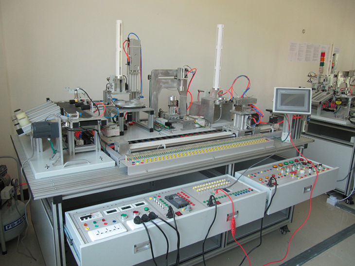 自動化綜合實訓裝置由由鋁合金導軌式實訓臺、典型的機電一體化設備的機械部件、PLC模塊、變頻器模塊、按鈕模塊、電源模塊、模擬生產設備實訓模塊、接線端子排和各種傳感器、計算機等組成。整體結構采用開放式和拆裝式,實訓裝置用于機械部件組裝,可根據現有的機械部件組裝生產設備,也可添加機械部件組裝其他生產設備,使整個裝置能夠靈活的按教學或競賽要求組裝具有生產功能的機電一體化設備。模塊采用標準結構和抽屜式模塊放置架,互換性強;按具有生產性功能和整合學習功能的原則確定模塊內容,使教學或競賽時可方便的選擇需要的模塊。設備需完全符合電工電子全國職業技能大賽所要求,同時還要求具有可拓展功能,可以組成更加大型的生產模擬系統,以配合各個用戶學校不同層次,不同專業的教學及培訓要求。